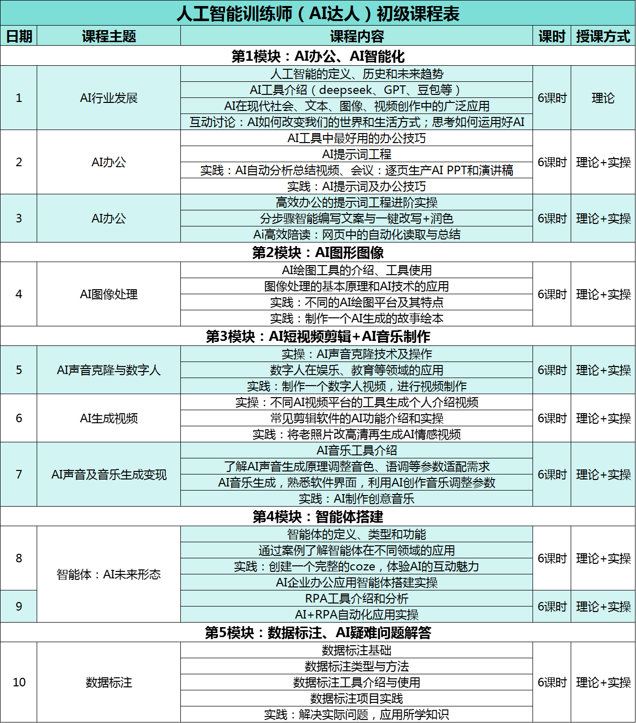 (2)实战导向:课程涵盖AI文案、AI视频、AI声音、数据标注、AI模型训练等实战技能,融入企业真实案例。