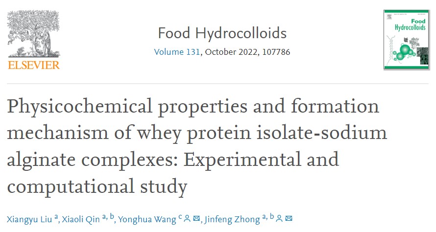 川渝共建特色食品重庆市重点实验室,伟德体育钟金锋博士近期在食品领域国际知名期刊《Food Hydrocolloids》(IF=9.147)在线发表了题为“Physicochemical properties and formation mechanism of whey protein isolate-sodium alginate complexes: Experimental and computational study”的研究论文,2019级硕士生刘祥雨为第一作者,bevictor伟德覃小丽副教授、华南理工大学王永华教授参与了本研究的部分工作。