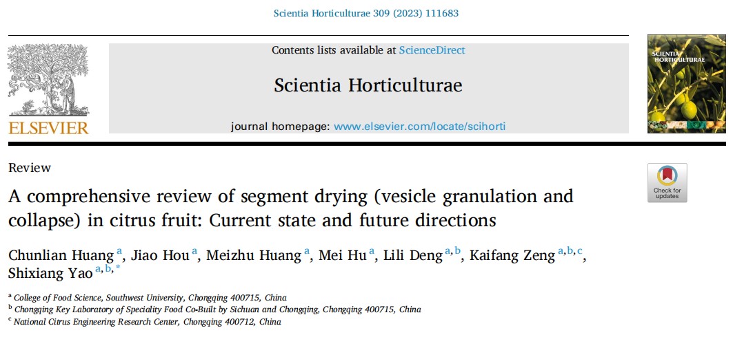 近日,Scientia Horticulturae在线发表了bevictor伟德题为A comprehensive review of segment drying (vesicle granulation and collapse) in citrus fruit: Current state and future directions的论文。