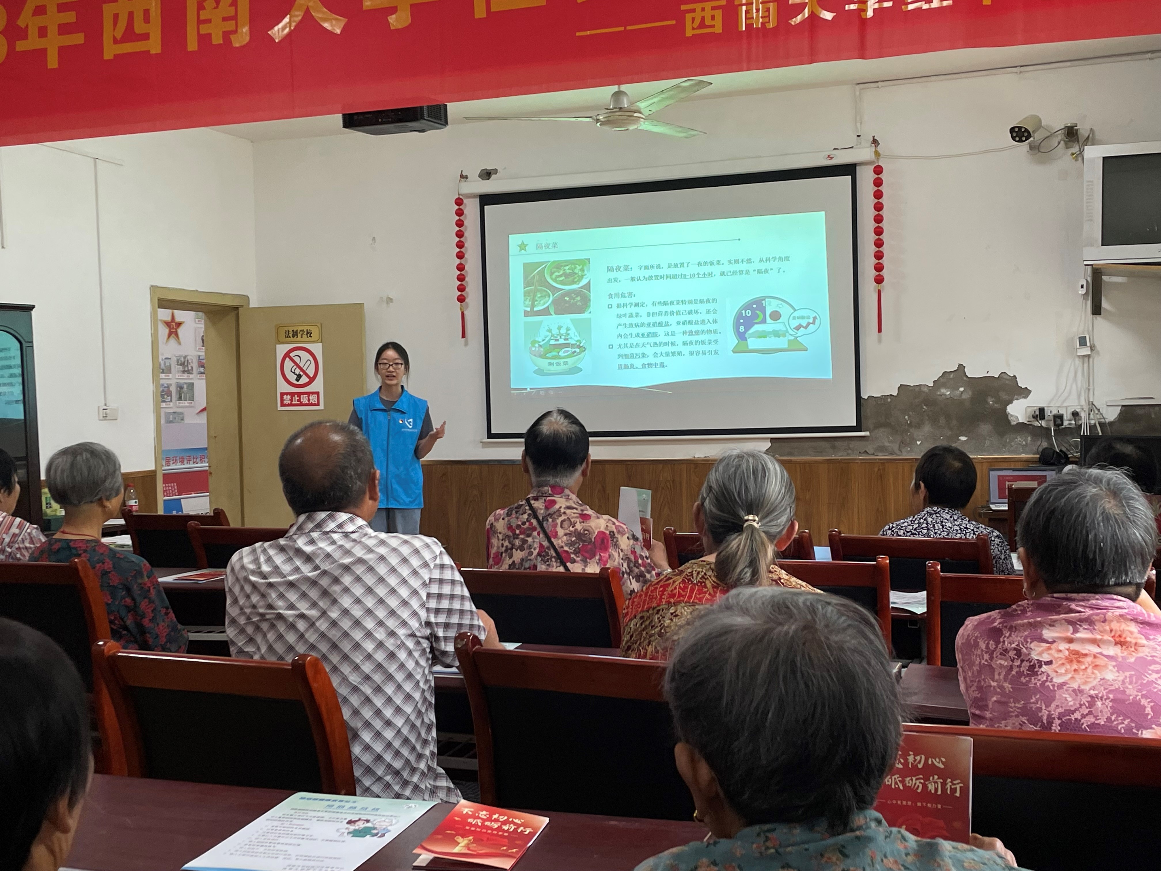 “民以食为天,食以安为先”,食物安全是重大的基本民生问题,是社会关注的焦点。首先,本科生第一党支部党员王雨西同志围绕“常见食品安全问题”、“如何合理膳食”和“正确认识保健食品、预防上当受骗”等问题展开食品专业知识科普,为老人及小孩提供健康饮食方案,增强村民的食品安全意识。