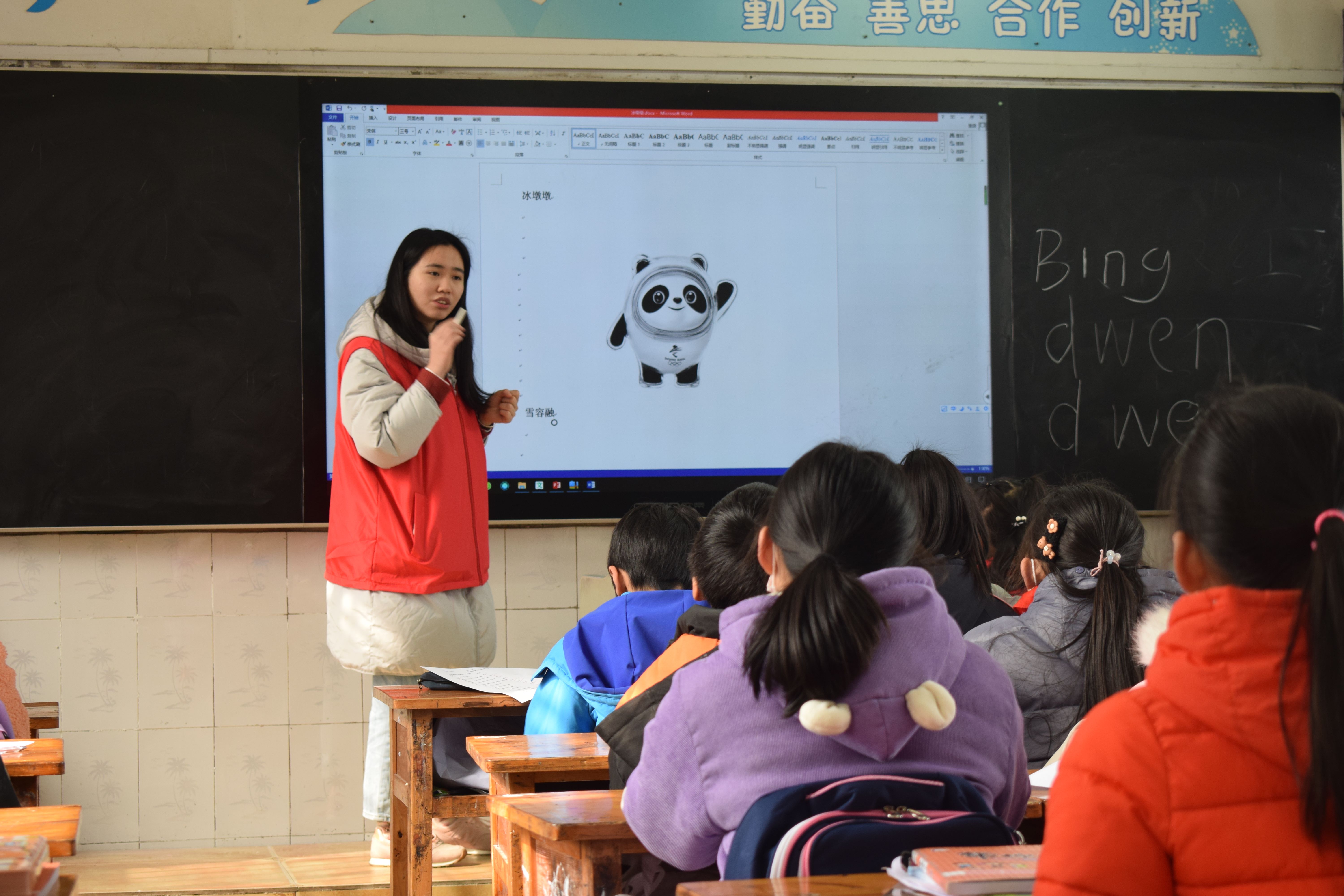 教室内,研究生团队的小伙伴们带领各年级同学们一起学习了简笔画,还为同学们科普了冬奥会的小知识,并且学习了冬奥会吉祥物冰墩墩的简笔画,在一幅幅简洁、生动的作品绘画中,提高了同学们的绘画功力和审美能力;同时,为增强同学们的凝聚力、展现同学们的蓬勃朝气,在教室外,趣味运动会活动也火热进行中。本次趣味运动会游戏多样,共设置了五个项目,大家不仅收获了丰厚的礼品,更收获了浓浓的同学情谊。