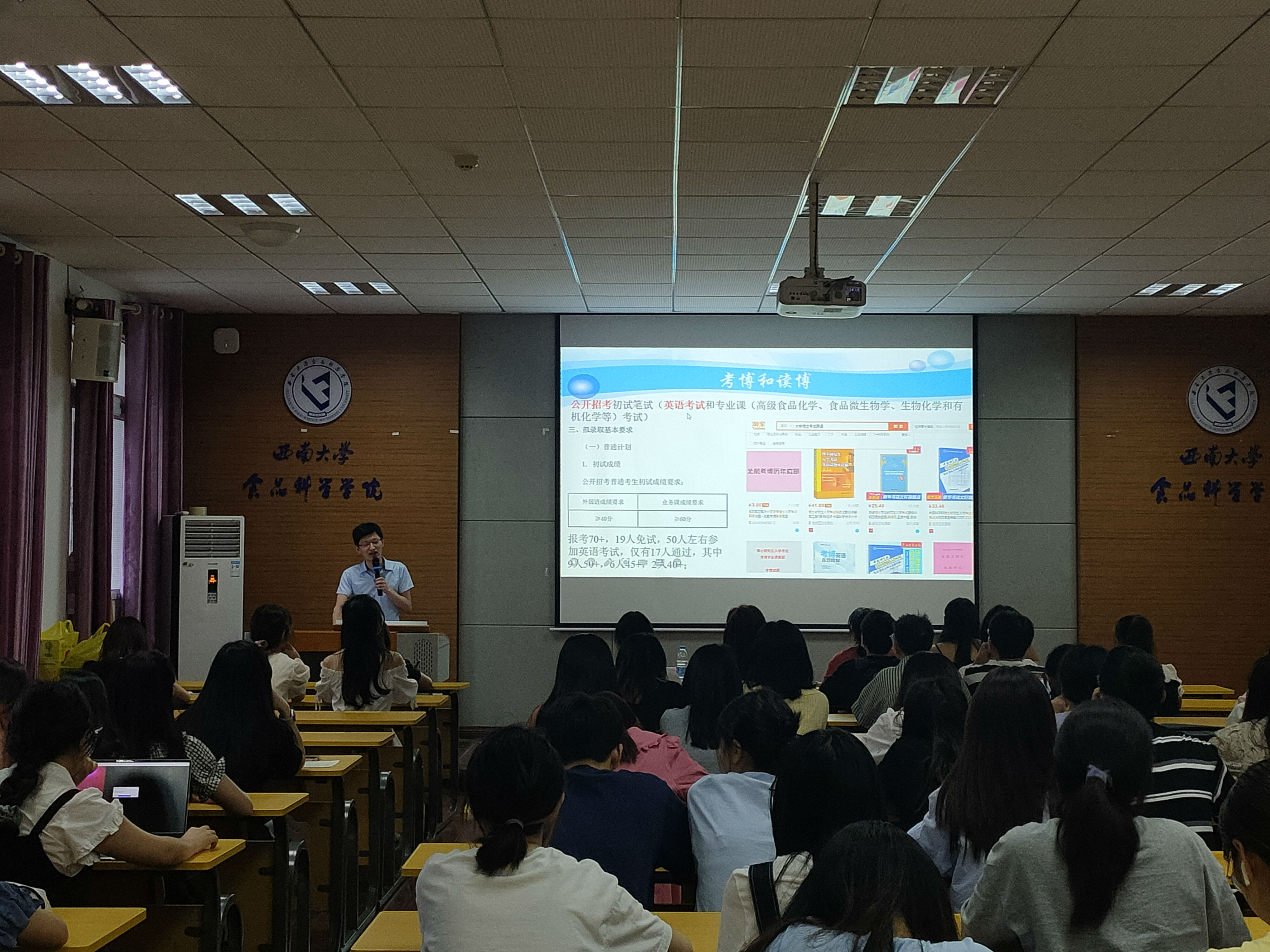 交流会上,2019级毕业生党员王智荣博士详细介绍了申请硕博连读条件、公开招考内容,并强调了选择公司、专业和导师时的注意事项。之后,2020级食品包装工程专业的何悦党员主要介绍了跨专业考博经验,向师弟师妹们讲解了跨专业考博的具体流程:寻找目标院校联系老师准备资料正式报名资料审核及面试。随后,2019级食品科学专业的赵萌党员分享了自己的考公心得,根据公务员考试的具体题型介绍了自己每个板块的学习方法,并推荐了相关网课老师及学习平台。接着,2019级食品加工与安全专业王朦朦同学以自身举例,向在场的研究生师弟师妹们分享面试技巧,介绍了简历投递、线上测评、签订三方三个阶段的成功秘诀。每位毕业生分享完毕后,观众席踊跃提问,经验分享人热情解答,互动性极强,场面热烈,同学们收获颇丰。