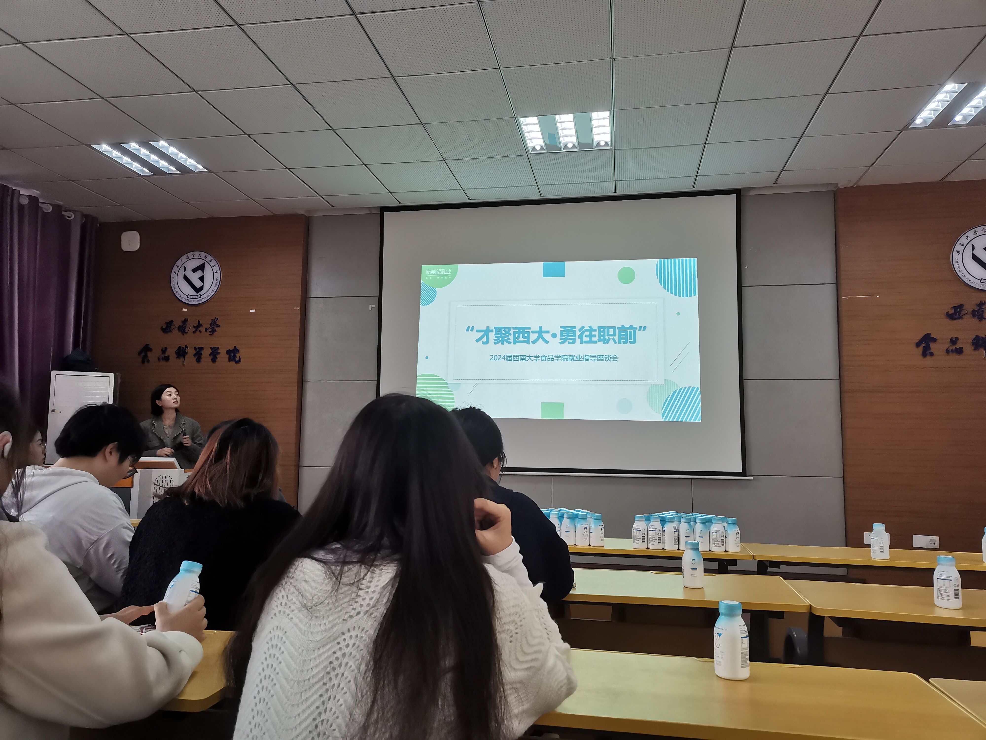 为深入了解行业前景,增强毕业生就业竞争力,提高毕业生就业服务质量,进一步帮助毕业生解决职业生涯规划实践中的实际问题,11月23日下午15时,“才聚西大 · 勇往职前”就业指导座谈会在伟德体育顺利举行。本次座谈会特邀新希望乳业研发中心总经理李启明、bevictor伟德19届员工-新希望乳业科技研究院靳苗苗作为本次的嘉宾,新希望乳业公司罗敏主持会议。