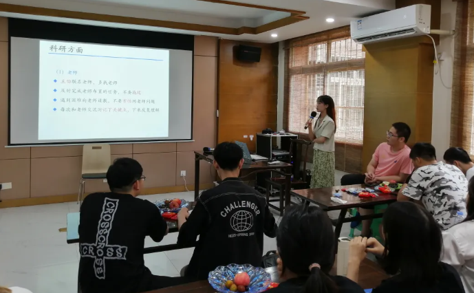 刘瑞在科研方面颇有心得,在交流会上,她强调做科研关键是要脚踏实地,即便起步晚了也没关系,但是必须得一步一个脚印、积累经验。其次,刘瑞通过讲述自己科研的经历,鼓励同学们多向老师请教学习和科研上的难题,并建议同学们尝试不带手机去图书馆,这样会极大地提高学习效率。最后,她为同学们解答了在写论文和做实验中的一些问题,并给同学们提出了科研中需要注意的事项。