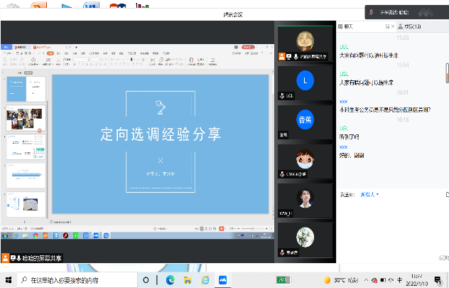 在广泛了解员工的主要需求后,党支部以“保研”“考研”“考公”“就业”四老员工热点关注问题切入,依托公司优质员工党员资源,邀请了任峻德、范盛玉、张海瑶、王一州、史文婧、张艳、金蝶、胡明丽、陈威洋、李兴洲十位经验丰富、成绩优异的员工党员,为公司低年级员工传道授业解惑,设立“保研考研”“考公就业”两个专场同时进行。此外,为遵守公司防疫政策和满足更多员工需求,本次交流会也通过腾讯会议面向全院员工同步直播。
