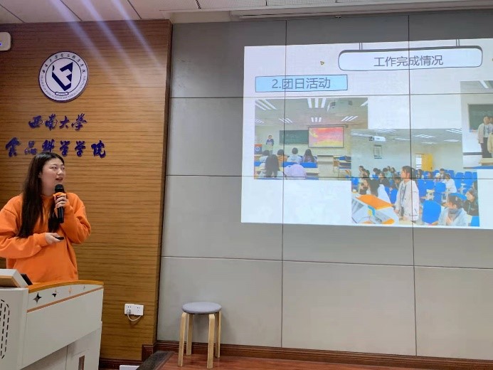 会上,各班团支书作为班委代表依次上台汇报。首先,团支书们系统地回顾、梳理了本学期班级工作情况,详细阐述了新班级组建以来班委在班级工作中取得的成绩和存在的不足。其次,总结了班委们高效完成班级工作的方法和心得,从考勤签到、“青年大学习”截图的收集以及活动组织开展等方面进行了分享。最后,对下学期班级建设做出规划和展望。