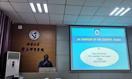本次活动由茶艺社的两名社团成员的茶艺表演拉开帷幕。两位同学的精彩演绎使我们感受到了茶艺之优雅与中国茶文化之博大精深。之后,由Isaac、Heba和徐薇三名职工分别为大家介绍和分享了自己的家乡的美食文化、标志性建筑和节日活动等。介绍之余,同学们积极举手与他们进行美食文化交流。他们生动有趣的语言与互动加深了大家对加纳、埃及、尼日利亚的风土人情与饮食习惯等的了解,使大家感受到了异国文化的多姿多彩。