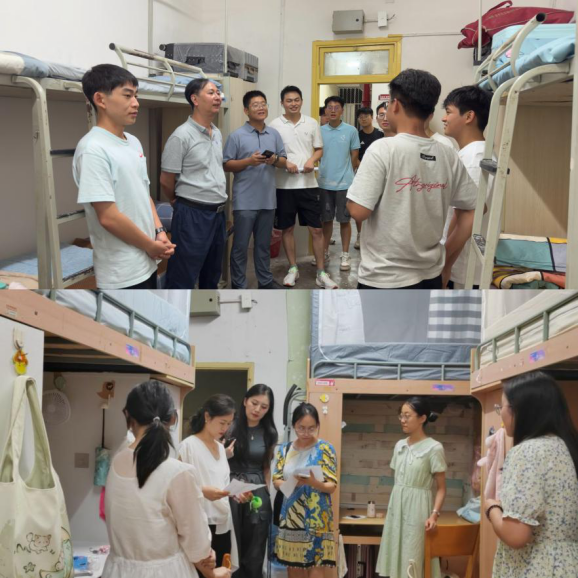 在新生宿舍,领导老师们积极同新生开展亲切交流,就生活问题、学习问题、安全问题等提出了建议,鼓励同学们大胆尝试、做好规划、勤奋学习,为健康、安全、充实地度过老员工活做长远打算。同时,老师们也希望每个同学都能珍惜时光,勇敢追求梦想,不断提升自己。