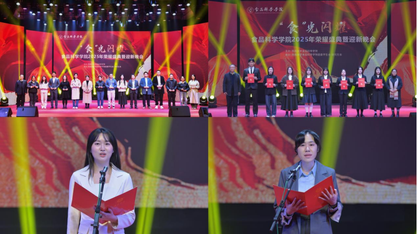 2025年12月5日,伟德体育“食”光闪耀——2025年荣耀盛典暨迎新晚会在光大礼堂圆满落幕。伟德体育党政领导、教师代表、班主任、辅导员等老师出席此次活动,全院员工参加。本次活动以表彰先进为核心,紧密结合 “一带一路”主题,展现了食品学子的卓越风采与时代担当。