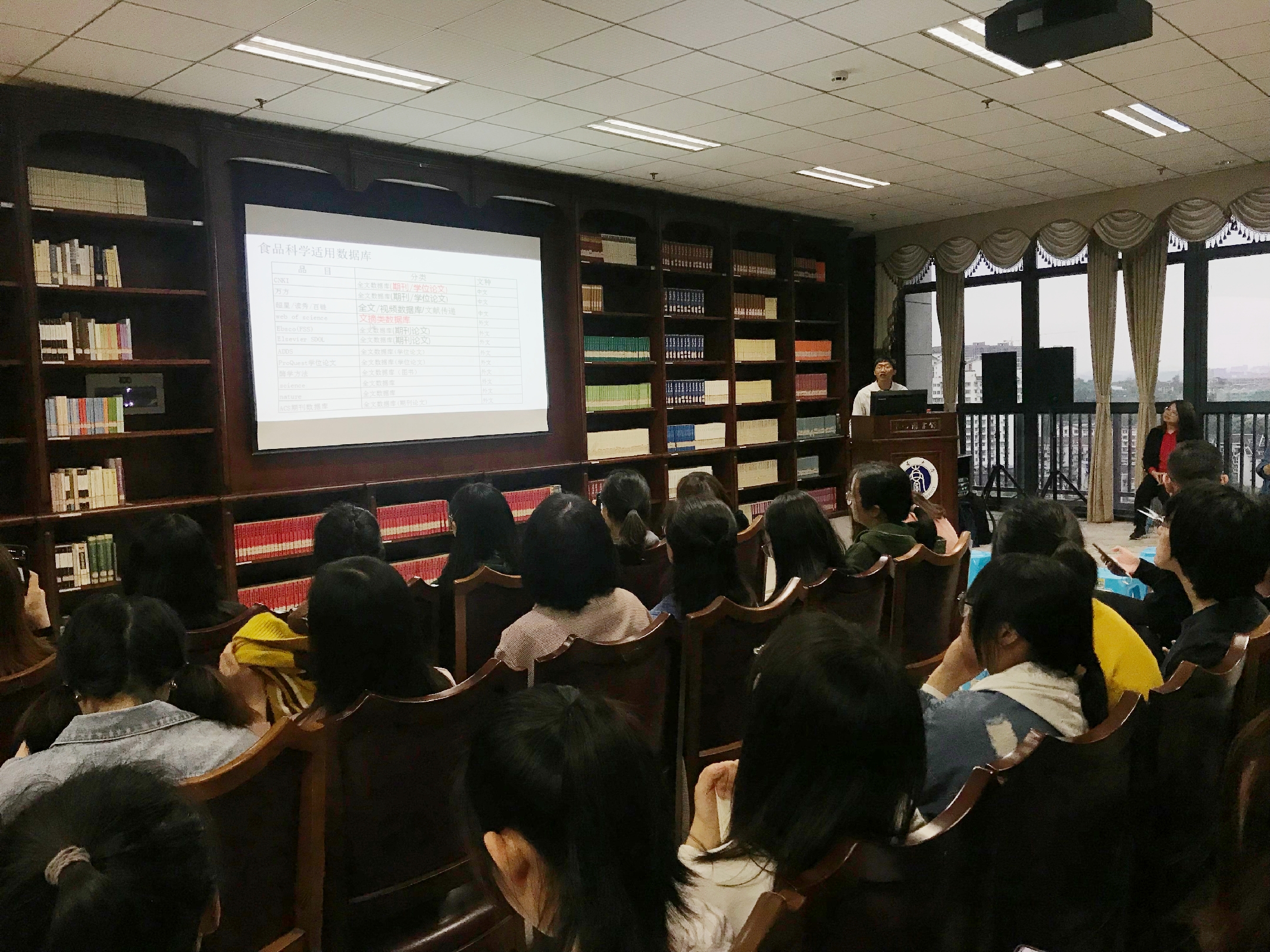 接下来,胡文婷老师与同学们分享了在EBSCOhost平台上检索外文文献的方法。在分享之初,她向大家介绍了EBSCO的历史和现状,并示范了如何进入EBSCO。随后,胡老师从综合学科检索数据库、企业商管财经数据库与食品科学数据库三个方面介绍了数据库包含的内容,并详细的介绍了数据库中与食品相关信息,其中包含食品行业领先企业的案例、食品服务、食品包装、食品运输等。最后,胡老师进行了上机操作演示,给现场同学示范了基本检索和高级检索方式、检索结果的筛选及查看、如何建立文件夹、设置期刊提醒以及食品相关企业的情况查找等。