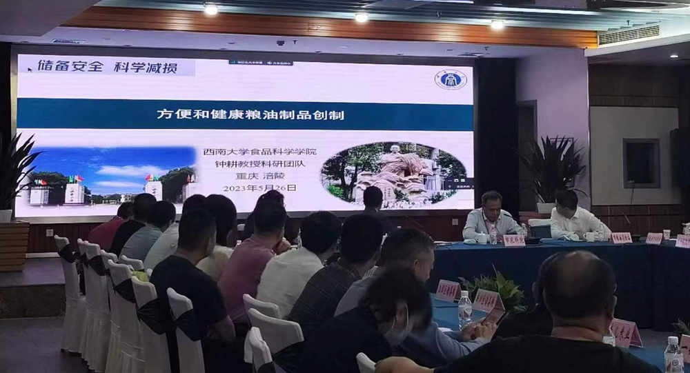 为深入学习贯彻习近平新时代中国特色社会主义思想和党的二十大精神,认真落实党中央、国务院有关决策部署,加快推进科技兴粮,提升我市粮食安全保障和粮食产业高质量发展水平,5月26日上午,由重庆市粮食局、涪陵区人民政府主办,重庆市粮油行业协会、重庆市粮油质检站、涪陵区发改委协办的重庆市2023年粮食科技活动周在涪陵正式启动。公司马良教授、钟耕教授研究团队受邀出席,相继参加粮油科技成果宣讲与产学研交流对接会、粮油新品种新科技展示展销活动、“科技兴粮、节粮减损”进企业等系列活动。