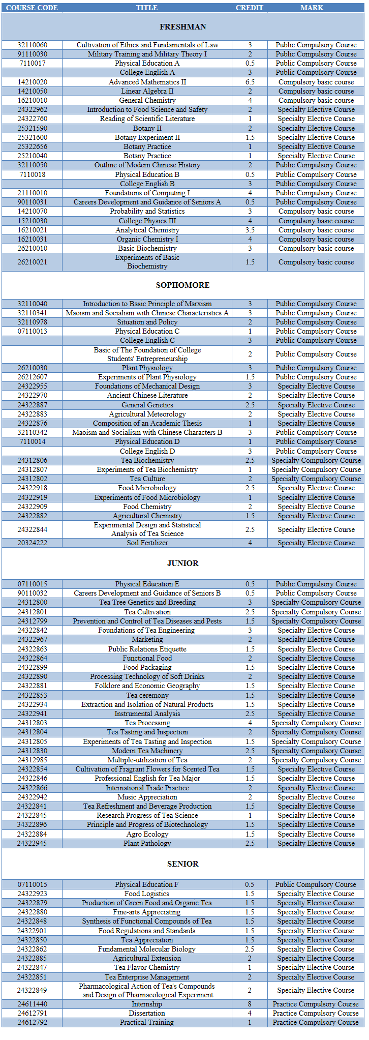 Tea Science (Undergraduate)